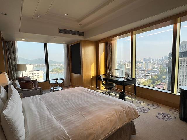 前3天是香格里拉的豪华阁湖景。比对过最便宜的是他们家APP,提前1个月订房,需要预扣押金,这有个小坑点后面讲。说是湖景房,实际左边窗户看出去还是有被对面楼遮挡。后来上了最顶楼吃饭也依然会被遮挡~ (前台建议1晚+170可升级个正面视角的湖景,还好没有,否则也只是被遮挡更正...)