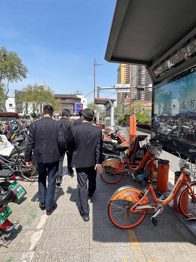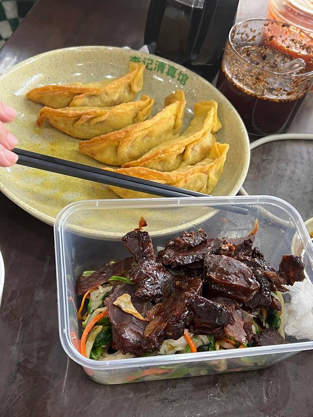 午饭目标是大名鼎鼎的李记清真馆(牛肉锅贴主打)。遇到1队去吃饭的人,穿得特别整齐...啊!这种人家在上班我在玩的感觉~~