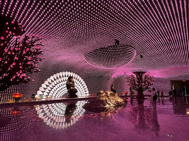 穿过一段“室内造景”,五彩斑斓地切换着灯光...
