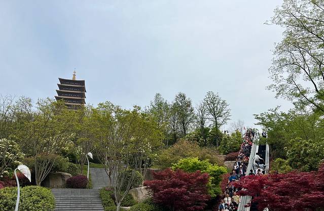 做了园区内10元公交到了佛顶塔,看到了传说中很有名很贴心的——户外手扶梯~
