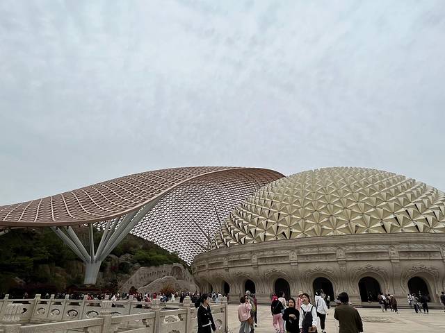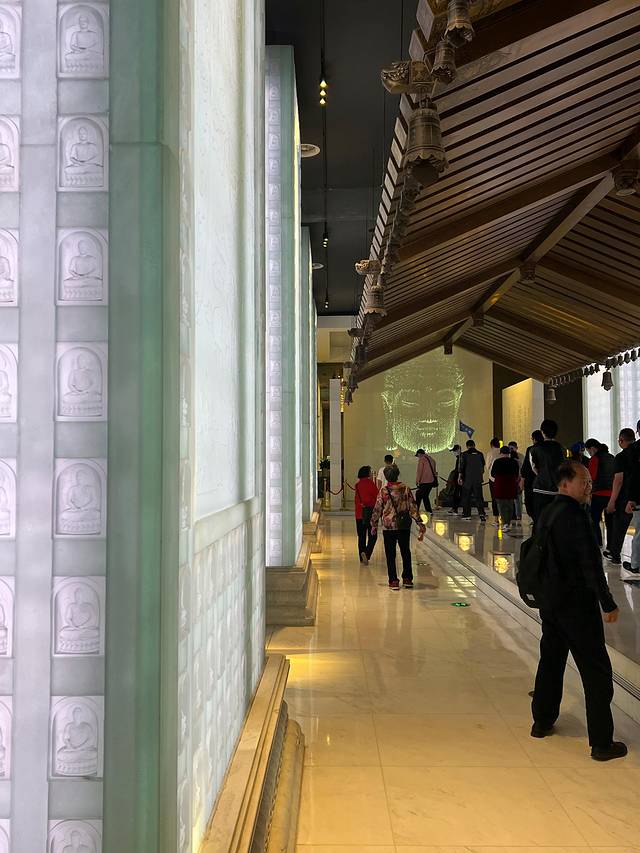 本次旅行最后的大景点:牛首山景区。看着这蜿蜒的排队引导步道...今天人少,简直难以想象他们派上用场得多少人。