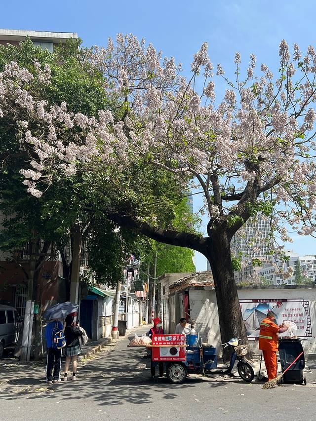 城墙出来,到了2周前刷爆小红薯的鸡鸣寺外的樱花大道,现在只剩下残余的花朵零星挂着了。