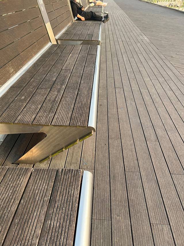 这边的观景廊的凳子,居然有近1米深。所以一排人都是架腿上去,犹如躺在沙滩椅~