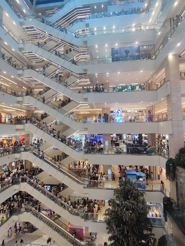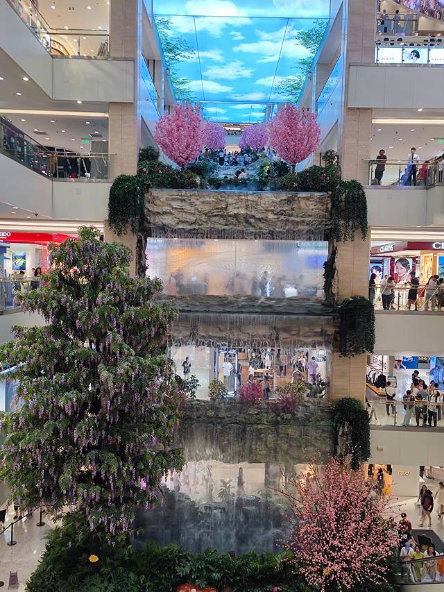 2号线永宁门上到小寨下车,到赛格商场,做亚洲第一梯从一楼到六楼,还有室内瀑布,挺美的,人也超级多。