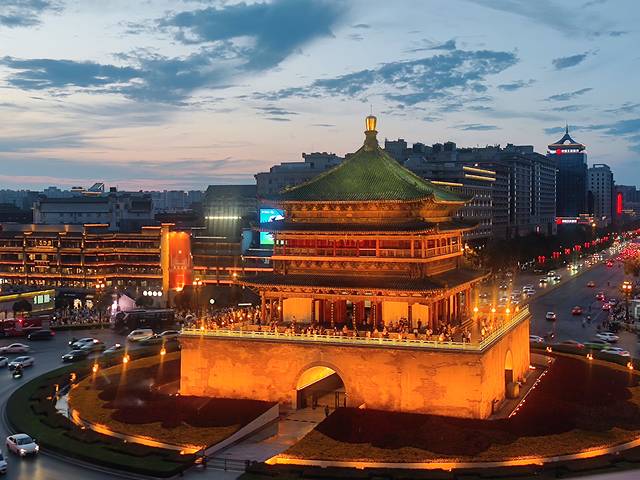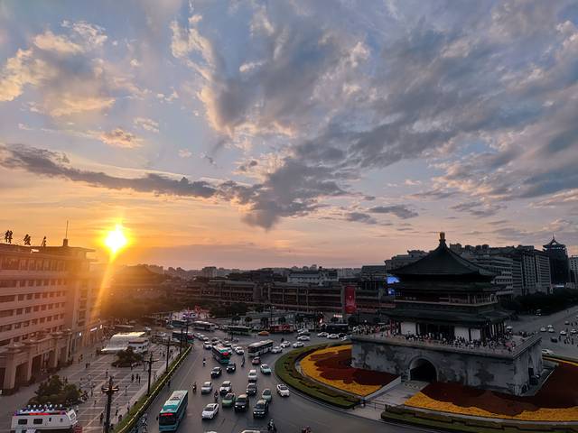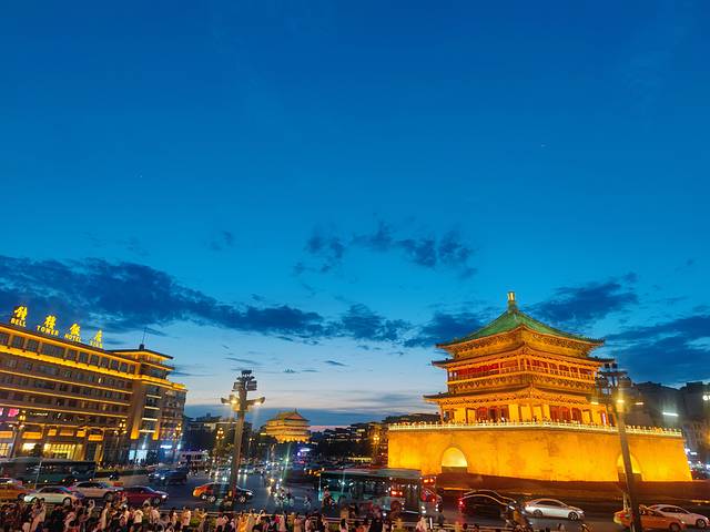青龙寺站3号线上车到小寨转乘2号线到钟楼下车5号口出进开元商城吃个饭,到5楼观景台找位置等天黑,夜景很美
