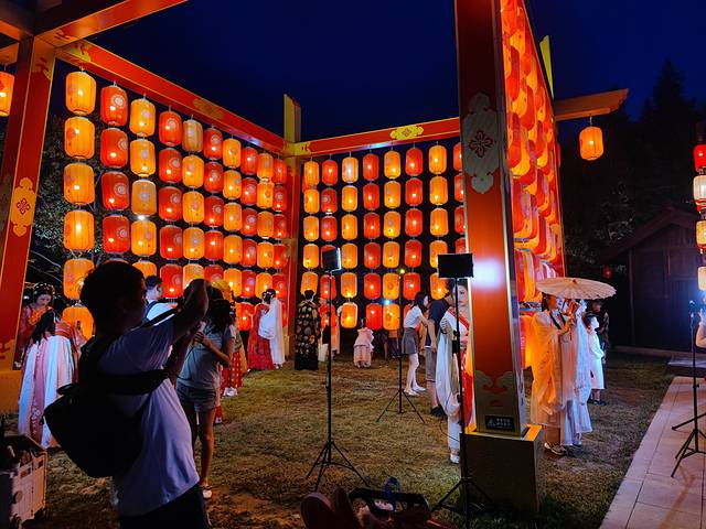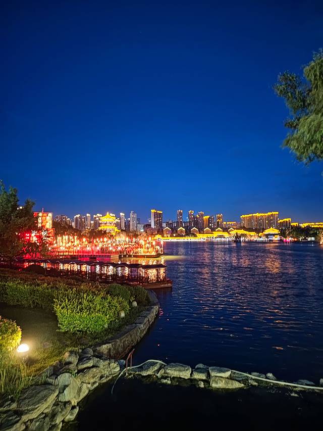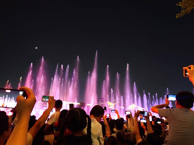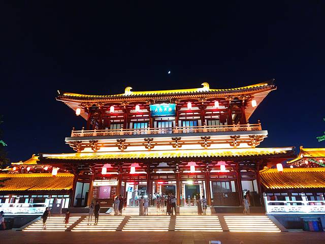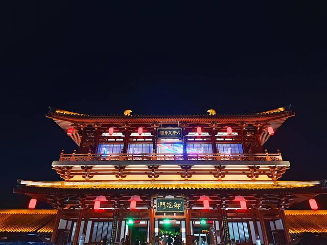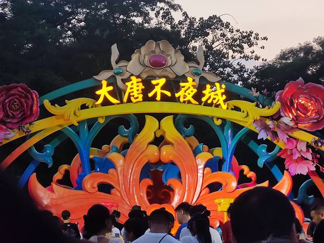出景区坐9号线回纺织城站内转乘1号线到五路口,再站内转乘4号线到大唐芙蓉园站出站即景区,晚上的夜景超美