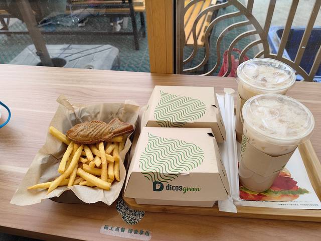 植养烟烤牛若堡,植养花酱蛋鸡肉堡,大红袍奶茶,红豆鲷鱼烧薯条,嗯好吃,鸡若堡超级好吃,太好吃了
