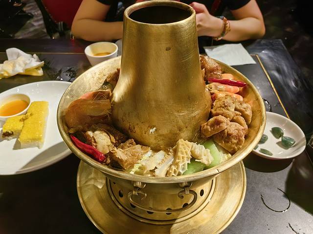 什锦锅,不好吃,酸酸的,可能还是吃不惯,里面有牛肉,牛肚,丸子,虾,下面是菜,冬瓜,娃娃菜,黄花菜,贡菜