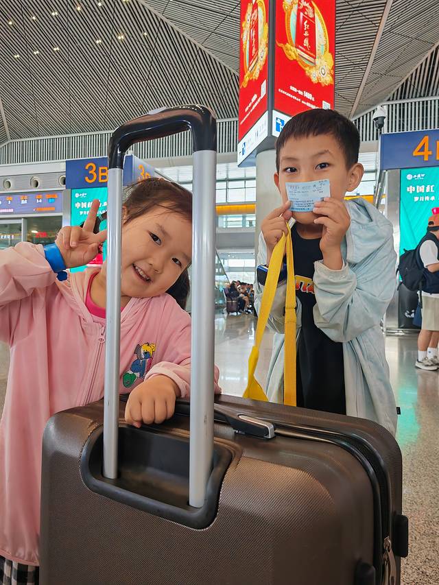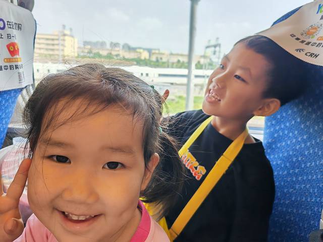 哥哥笑着嘀咕,✌终于又要坐大火车了,太棒了!