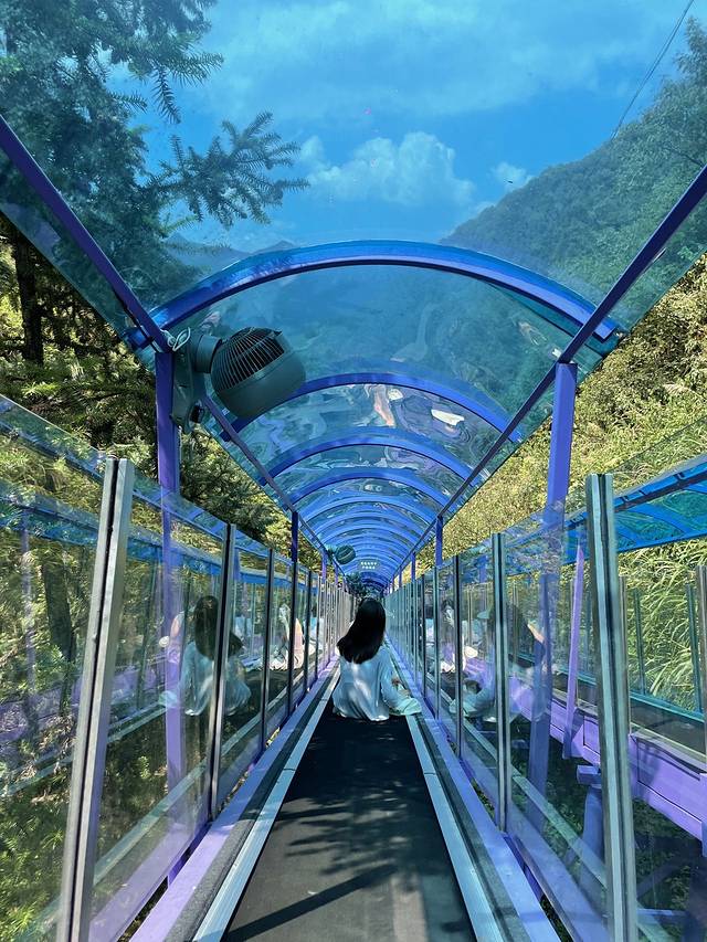 穿过天子洞,最令人期待的就是了世界纪录紫龙峡漂流啦!世界上最长的玻璃漂流。漂流依山而建弯弯曲曲想一条巨龙,全长3.8公里落差400米相当于70楼层高漂流下来,全程漂流约10分钟,一下消去了身上的暑气,不仅能感受到山间漂流的惊险刺激还能观赏到山里的美景。