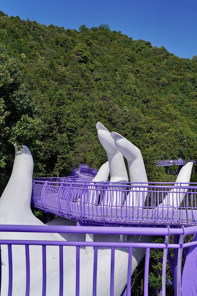抵达上山,便是网红观景台,紫荆花悬崖眺台+天空之境这里是拍照出圈最好的位置一共有三层,二层是悬崖眺台,三层是天空之境,站在上面仿佛也蓝天白云零距离接触。视野格外的好,山峰重峦叠嶂,山谷间的微风掠过,带来一丝凉爽。