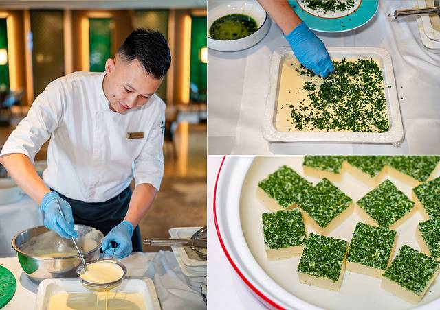 在青雅中餐厅吃过午饭后还不够过瘾的话,酒店还提供了十分有意思的烹饪课程给度假的宾客参与,可以与家人或朋友一同参加,学习由酒店青雅中餐厅行政总厨温师傅亲自指导的菜式。而我们挑选的是“珍菌手工菠菜豆腐”的菜式去学习如何制作,现场大厨亲自示范,每一个步骤都非常用心去讲述,在愉快的欢笑声中结束。学会的菜式回到家也能亲自下厨制作,给家人品尝一下从大厨真传而来新菜式的美味!
