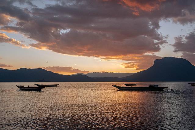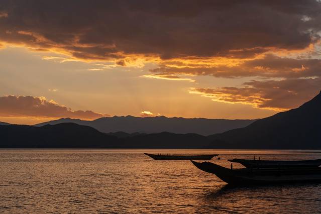 如果你有空在泸沽湖住上几天,你会发现,泸沽湖的日落每天都不一样,每天都有不同的美。