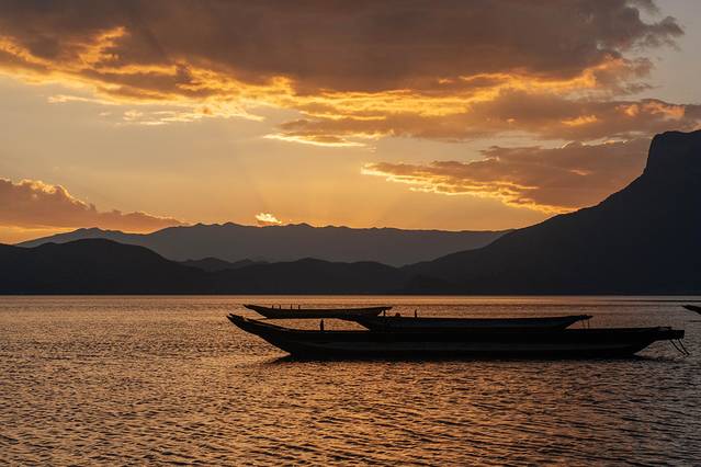 泸沽湖得天独厚的地理位置给人们追赶日落的提供了便利条件,