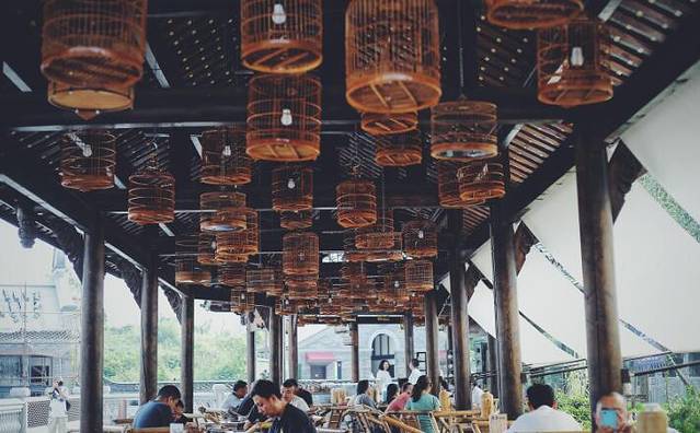 菱窠是文豪李劼人故居的名字,茶馆是以李劼人对老成都的描绘建造,生长在川西屋檐上青砖黛瓦的菱窠茶社没有门,是喝坝坝茶,感受市井生活的好去处。竹编的茶壶套,精致中透着古朴。隔壁有剃头、采耳、擦皮鞋,老成都人的3件套一样不落。