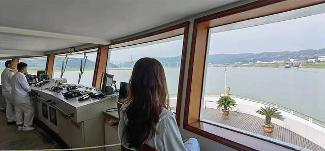 中午回到船舱吃午餐,还有午休时间,下午参观驾驶舱还有欢迎酒会。中午午餐时间才开始航行,下一站忠县。