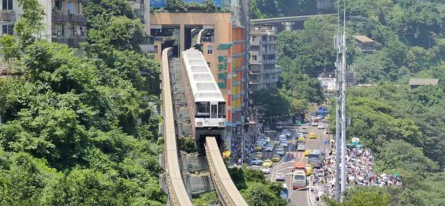 在揽胜亭拍到的李子坝穿楼地铁,右边那一堆就是观景平台,真是暴晒,而且人太多是无法照出来口吞轻轨的效果