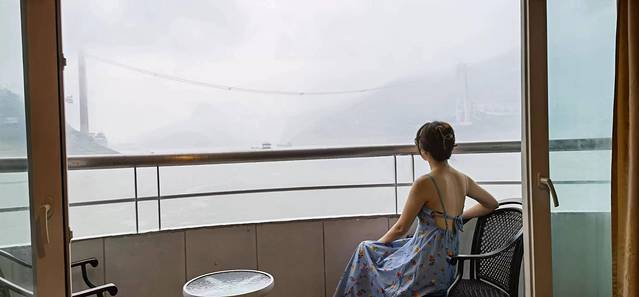 再者就是上水和下水,上水就是逆流而上,从宜昌到重庆,下水就是顺水而下,从重庆到宜昌。我们选择的是下水,网上有许多关于选择左舷右舷的,其实两边风景都差不多,真的无所谓。但是还是要选择3楼以上,2楼阳台有遮挡,3楼就是开放阳台。
