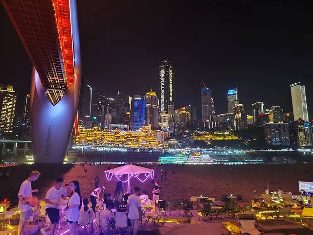 昨天在洪崖洞楼下拍的,今天去了对岸,从大剧院地铁站下车,然后顺着右手边一直走看到重庆大剧场后旁边有个停车场下去就是江滩公园,人多的时候会限流,绕好大一圈,可以一直走到江边。
