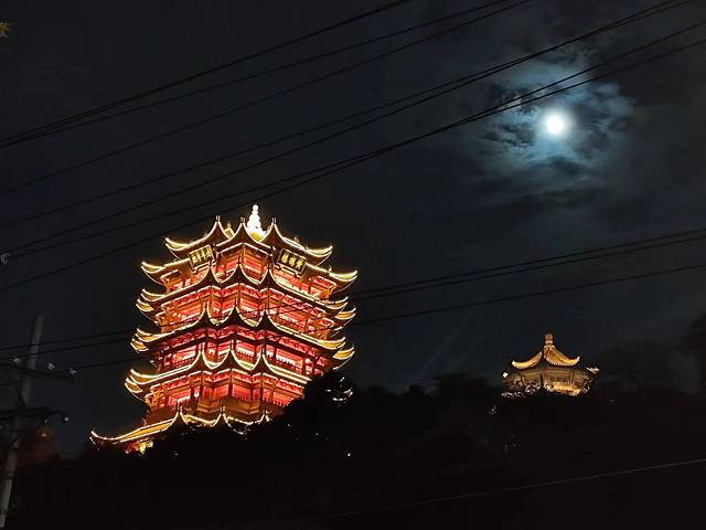 晚上去了黄鹤楼和长江大桥,从地铁站出来到黄鹤楼要走10分钟路程,虽然一出地铁站就能看到黄鹤楼。