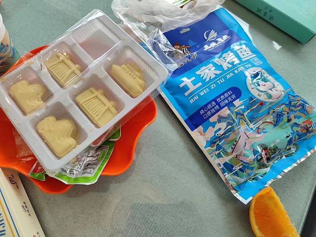 送的绿豆糕,烤鱼,跑山鸡,还有一个玩偶和不限量茶水