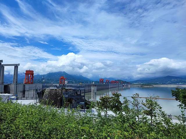 从宜昌秭归县港口下船后,坐大巴前往三峡大坝景区。刚下船的时候还是大雨,等到了景区就是大太阳,说不准的天气,三峡大坝主要是两个点,一个是坛子岭,一个是185观景台。