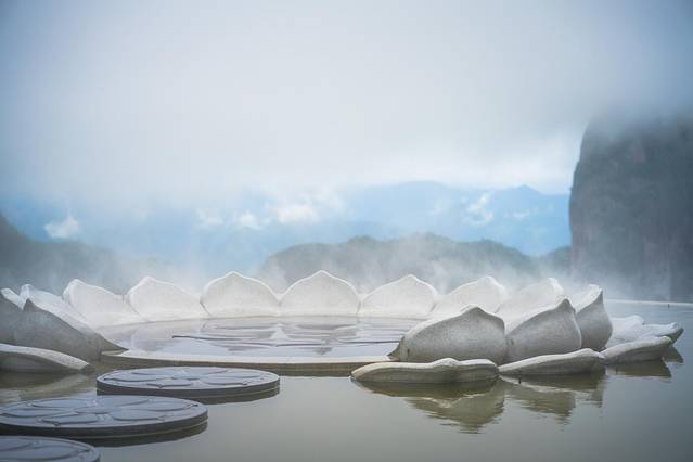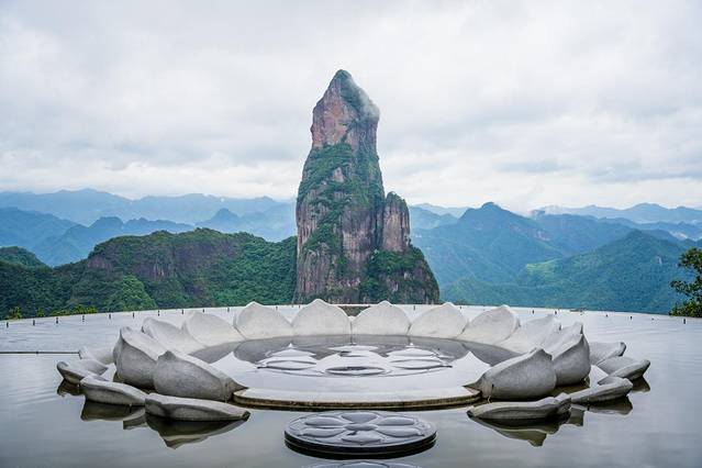佛影莲韵,如盛开的莲花的观音座正对着的是神仙居的标志性景观【观音峰】,当水池中的雾气升起时,莲花座就变得仙气飘飘。这里是一个非常出片的观景台,也是网红景点之一。