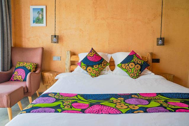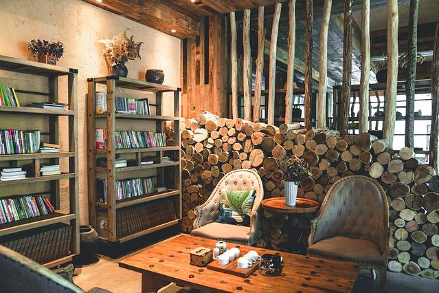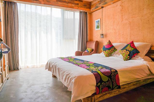 整个民宿的设计都与自然息息相关原木风的调调,斑驳的土墙,随处都可感受到木元素的设计走在小院里,处于天然氧吧中。
