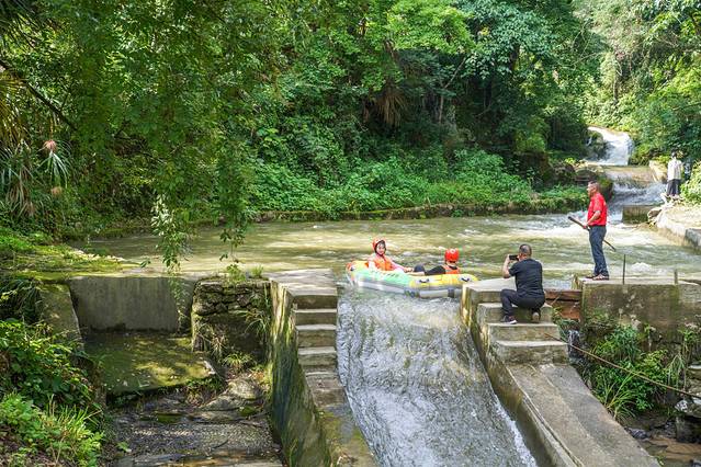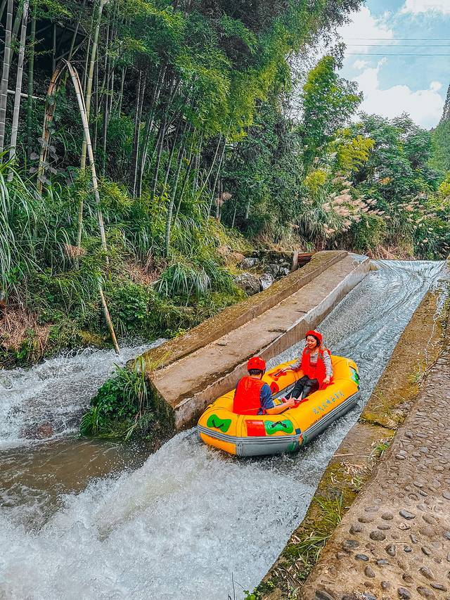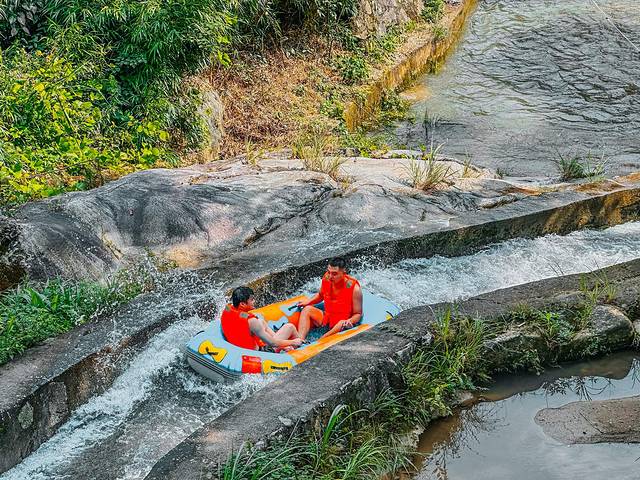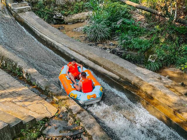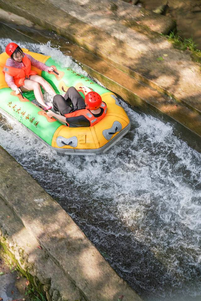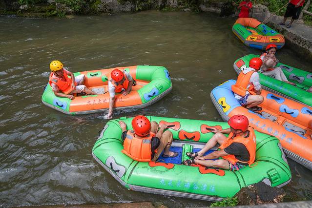 清凉的山泉水格外解暑,从一开始长长的水道就刺激连连刚一进入漂流,马上就来个大大的俯冲多个S型弯道的极限体验,整个皮筏艇像被抛上了半空。