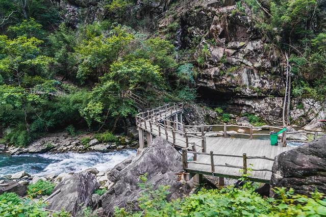 在栈道行走,迎面的瀑布水特别清凉溪流边玩水,看瀑布成群就像走进仙境一般景区门口不显眼,但深入景区内就像打开宝盒一样多处瀑布静待你探索发现。