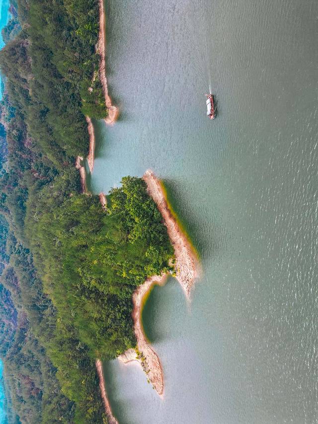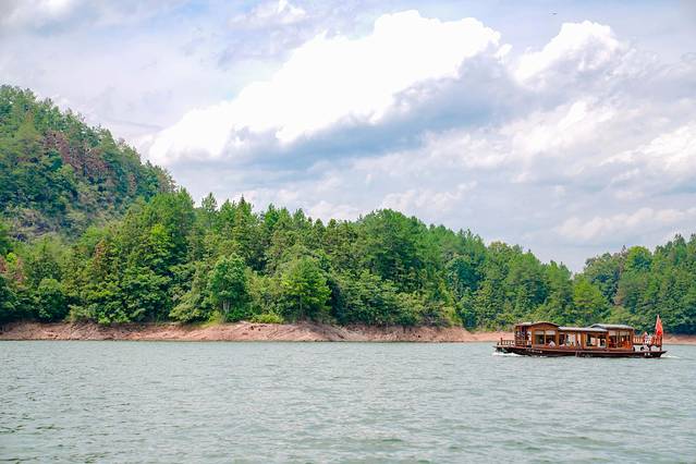坐在船上看两岸山色,宛如步入山水画卷之中。虽然正是夏天,但一点都不热,被这里俊俏的山与温柔的水打动了。