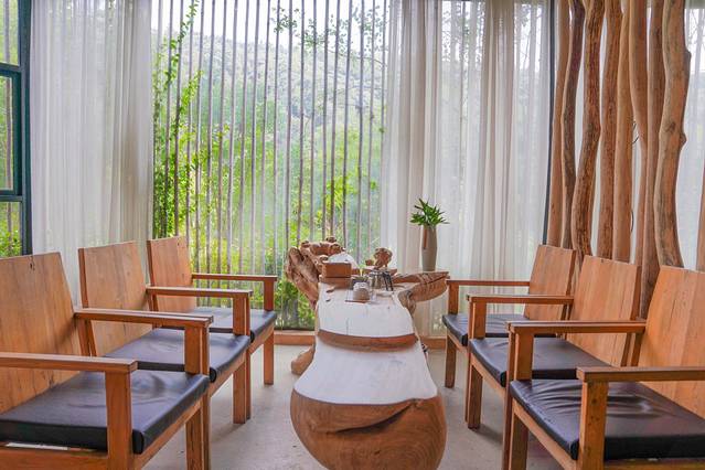 住在这里,能够随时感受山间野去落地玻璃窗可远观远处翠绿群山目之所及是一片葱葱郁郁的竹海松林有一种莫名的力量让烦嚣的心沉静下来宁静致远的意境,悠然而至。我想这大概就是“隐之大野,居之山林”的真谛吧。