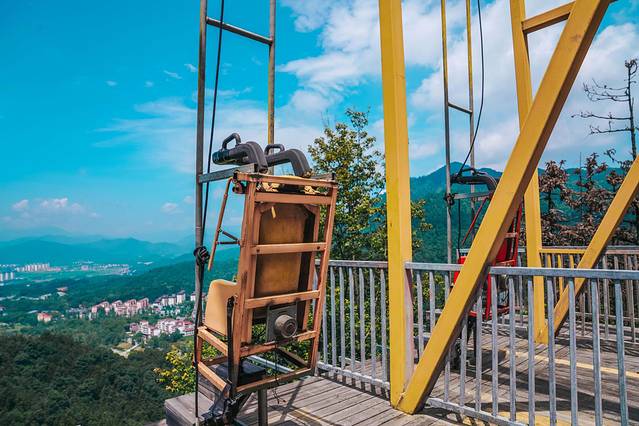 喜欢速度与激情的我早就期待悬崖秋千的到来荡秋千慢慢上升至高空,从高空一跃而下强大的离心力,让我忍不住尖叫。