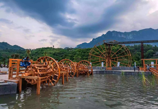百车河有诸多观赏型、体验式水车,形式丰富多样,是一个大型水车主题文化园。轮轴转动带起清凉的水花,将清澈的河水倾倒在岸边的水槽、田地里,不仅仅哺育了沿岸的儿女,更是为这里增添了一份独特的风采。