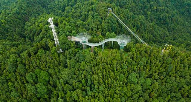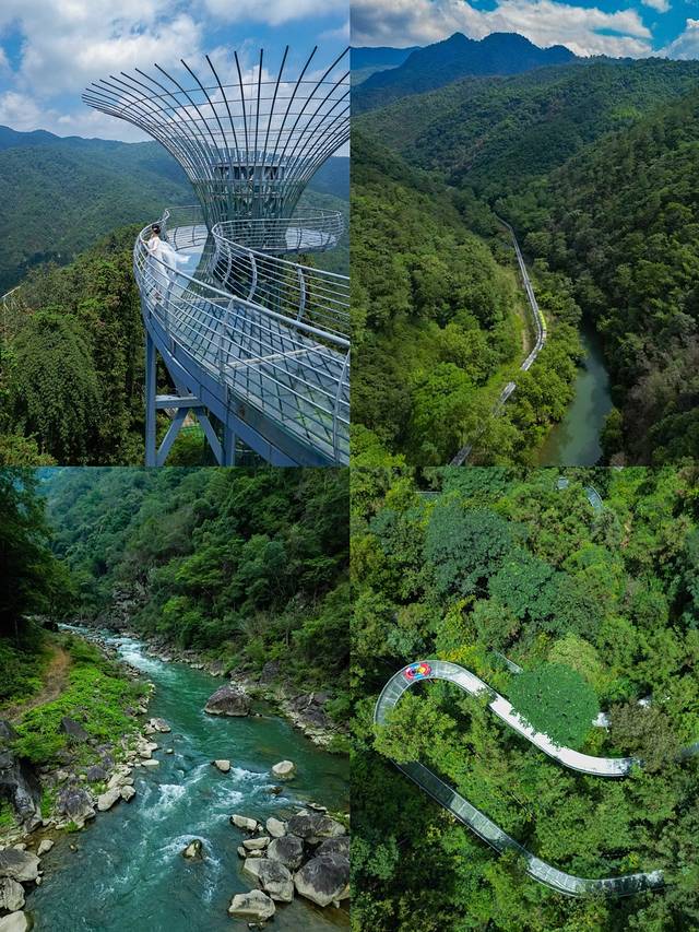 “天空之树-望鹤台”处于高空,走在上面脚下自然风光一览无遗。这个也是景区很漂亮的一处网红打卡点,如果有无人机的话,可以航拍会很出片。