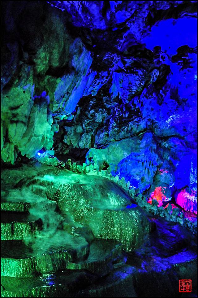 我们原定游览大金湖的甘露寺,听说景区在维修,于是,临时改变行程,上午游览将乐县玉华洞景区。玉华洞是福建省最大的石灰岩溶洞。全洞总长约6公里,因洞内岩石光洁如玉,华光四射而得名。虽然洞内小径盘曲、琼楼玉宇,但是,因为以前游览过其他近似溶洞,所以没有太多惊喜。