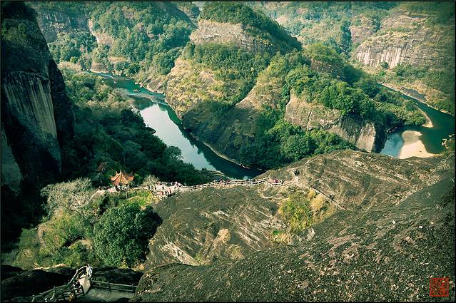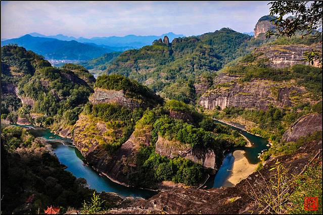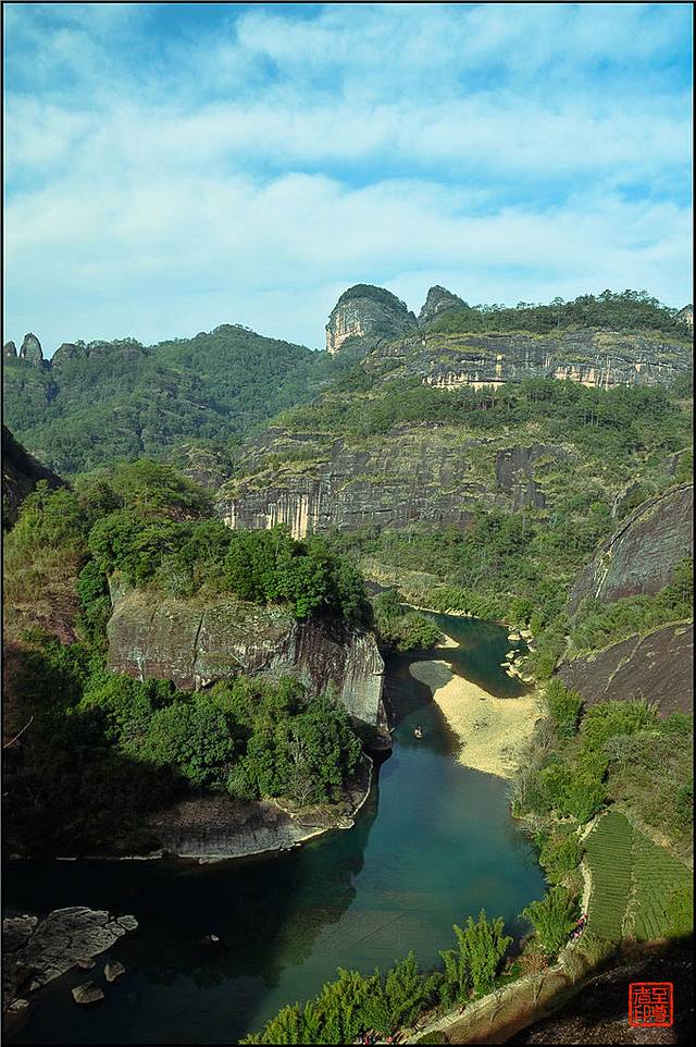 我们上午驱车到达景区,按照“登山观景、九曲泛舟”的步骤,首先攀登位于景区中心的天游峰。天游峰东接仙游岩,南续清隐岩,西连仙掌峰,壁立万仞,高耸于群峰之上。徐霞客评之为:“其不临溪而能尽九曲之胜,此峰固应第一也”。全程近3小时的游览,对体力要求不高,一般人都可以轻松完成。之后按照预约时间,驱车到达九曲溪码头,开启九曲泛舟漂流之旅。
