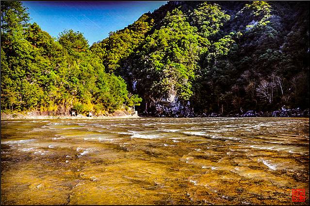 白水洋是鸳鸯溪五大景区中较具特色的天然景观,平坦的岩石河床一石而就,在阳光下,洋面波光粼粼,一片白炽,故称之为白水洋。河床布水均匀,水深没踝,是世界上少有的浅水广场。