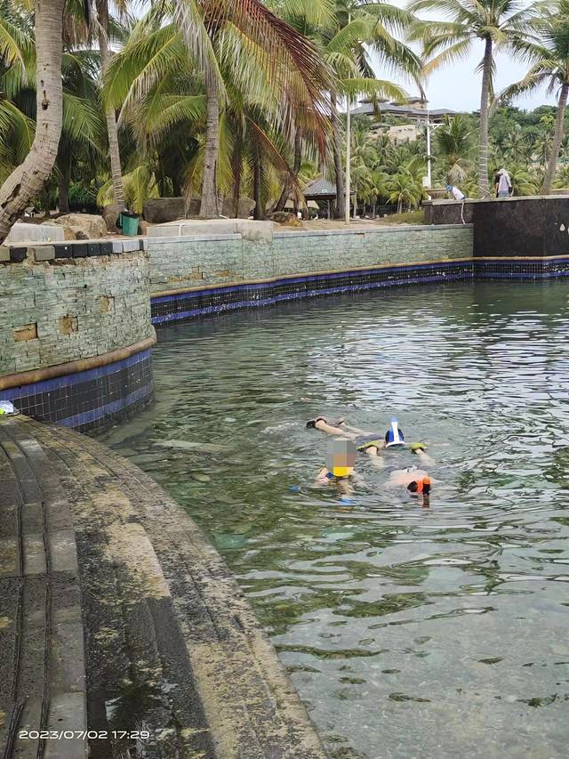 这是一个露天的废弃泳池,退潮的时候在里面游,我们自己买了简单潜水头套,他们说看到了鳗鱼,螃蟹,寄居蟹,我没下水,只看到了十几条彩色小鱼。