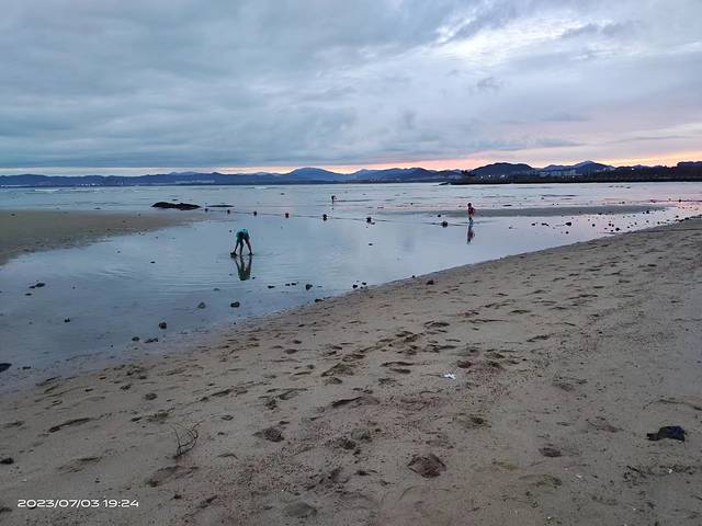 5点过去新村码头,民宿有赶海工具可以借,不要钱,用了还回去就是。带了瓶水,坐2元一人的公交船到猴岛。下船就开始捡海星,螃蟹。基本这个月晚上6点就是退潮期,很多小东西。路上遇到的大爷说,很多本地人在那里捡到晚上半夜涨潮,捡很多,早上5元一斤就卖了。