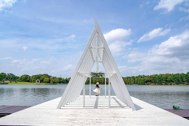✅湖边有个镂空三角的造景台,把这个当做框景很出片哦,妥妥的封面照