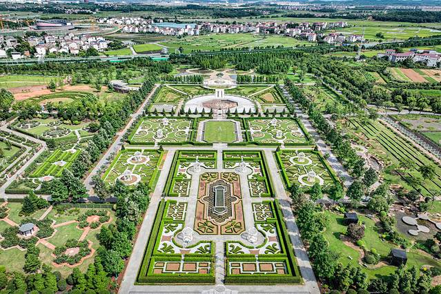 ✅在爱情广场正中有一块罗马柱围绕的阳台,从这里俯瞰模纹花园是最佳打卡视角,一瞬间仿佛进入了法式宫廷庄园中
