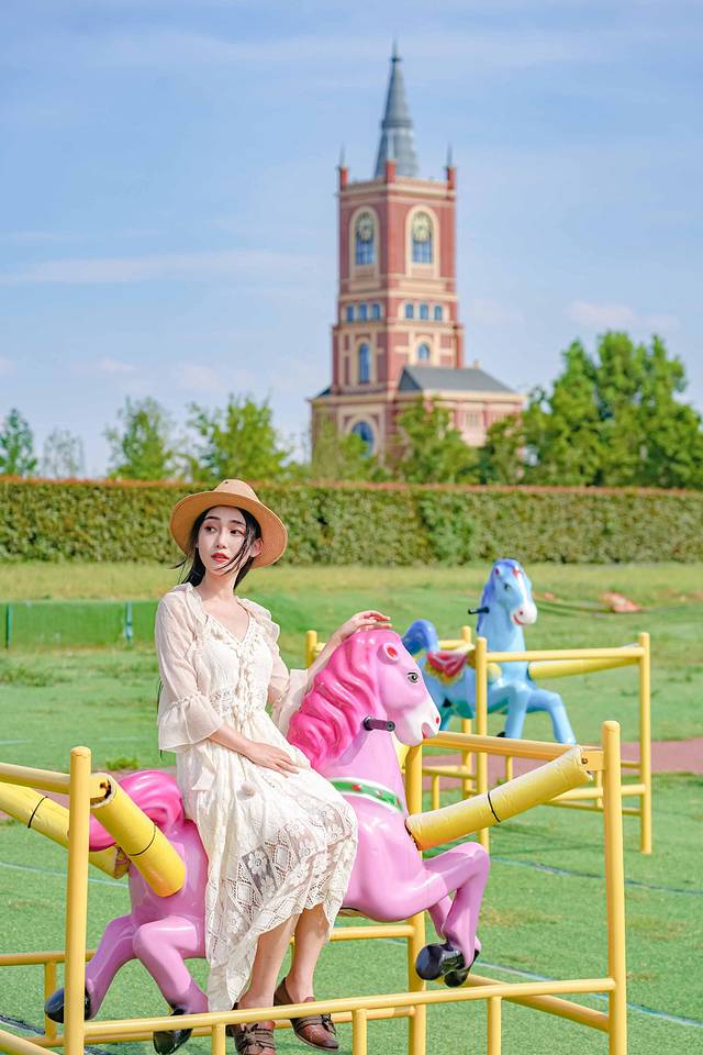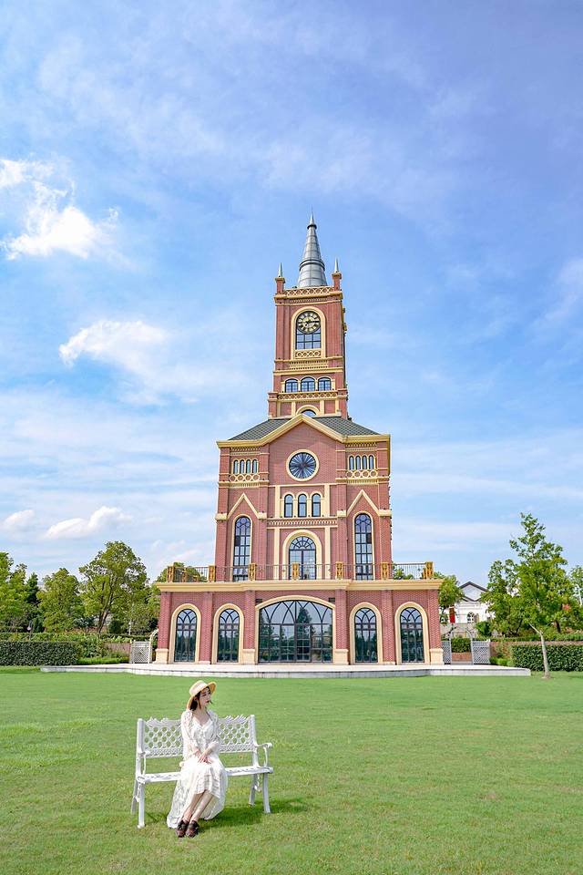 ✅城堡的最佳视角除了航拍,还有从四周草坪上低视角仰拍,现在草坪上放了一张白色长椅,正好作为拍照道具。如果是在花期正盛的时候,用城堡前的花作为前景还可以照出人在花丛中,身后是城堡的梦幻感觉呢