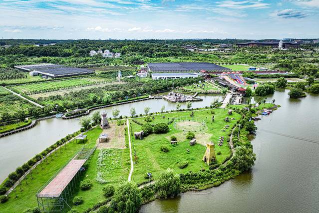 蓝天白云一望无际, 绿草茵茵没有尽头, 俯瞰整个生态园只让人感觉到心旷神怡,充满生机