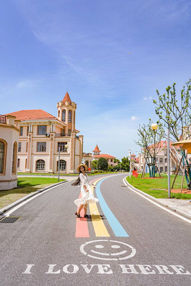 整个设计小镇, 错落有致的红房顶小别墅格外引人注意, 中间一条蜿蜒的彩虹公路也很出片