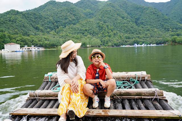 不得不说景区实在太懂游客心,除了现代感的玻璃滑道漂流外,景区的逍遥岩岭湖还可以体验竹筏漂流,乘坐竹筏泛舟湖上,宛如一叶扁舟行驶在逍遥岩岭湖,峰峦叠翠,湖光山色相映成趣,别有一番诗情画意。