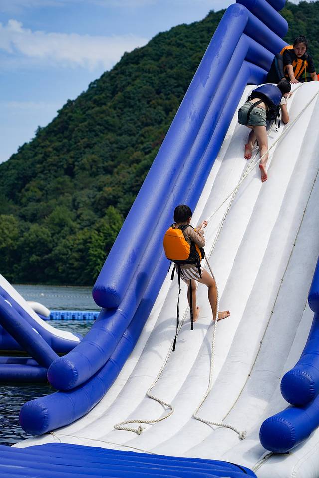 看似简单,实际一不小心就要滑倒,超有魔力,大家玩得不亦乐乎,一边摔跤一边大笑不止,适合亲子家庭一起闯关,也是团建游客的大爱。