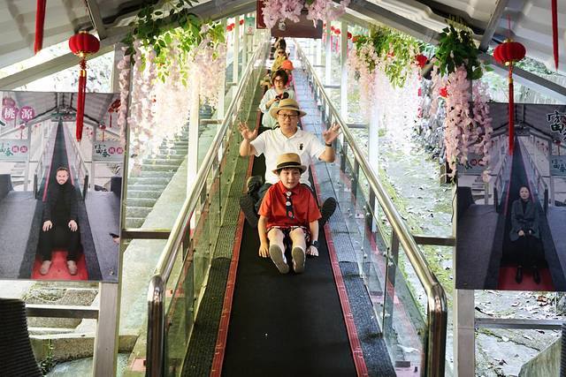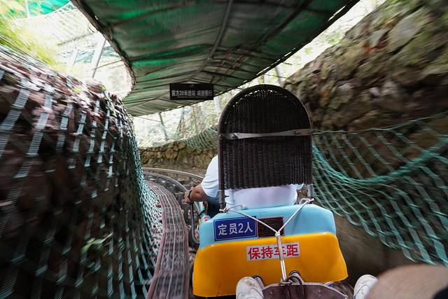 野槠林区内可以体验云霄飞车,两人一车,速度可由游客自行控制,可快可慢,如果说富春云梯是上山的偷懒神器,那么云霄飞车就是下山的偷懒利器。