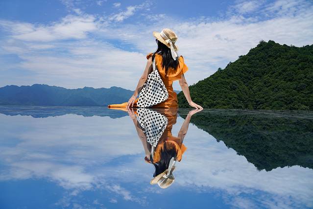 可以清晰倒映出山色云影,天气好的时候非常唯美,建议穿亮色衣服,拍照很出彩。