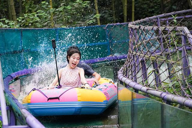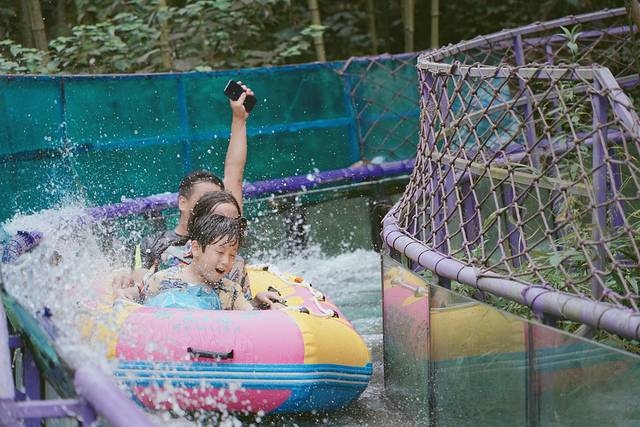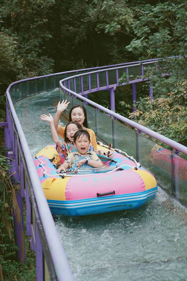 元宝最爱的仍然要属紫龙峡玻璃漂流,全长3.8公里余米,在山谷之间蜿蜒回旋,全程漂流差不多可达10分钟,浪花打在脸上,消暑又刺激,非常过瘾。